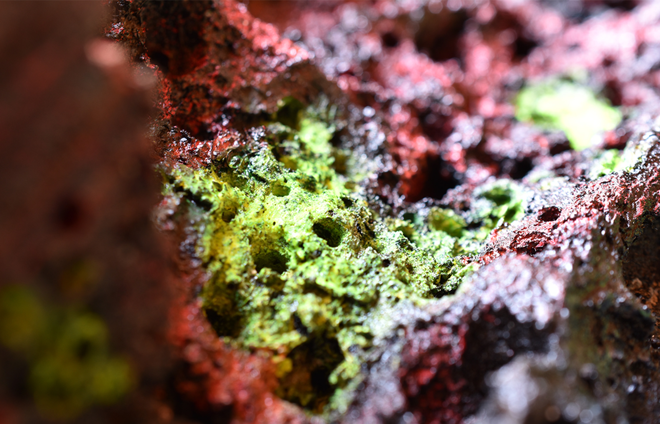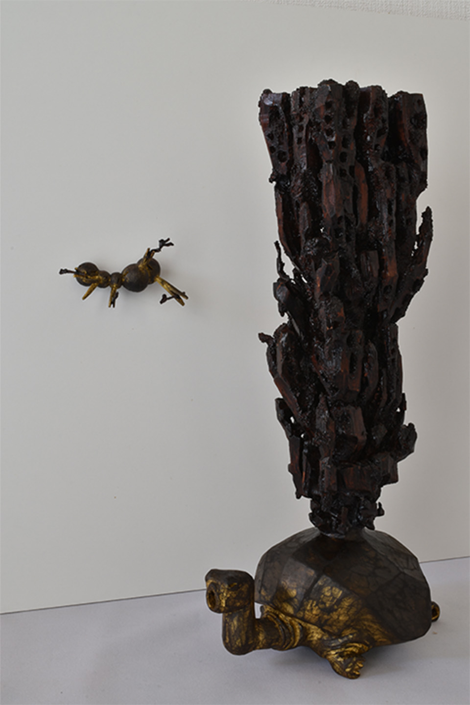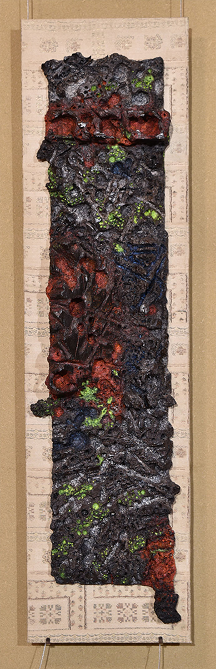 シリーズLandscapeは縄文時代の遺跡から発掘された漆製品の、7000〜8000年を経た様相をモチーフにしている。ミクロの世界とマクロの世界はときにシンクロして見えるので、ミクロの景観(landscape)を作る事はマクロの景観(landscape)も表現するのではと思ったからだ。